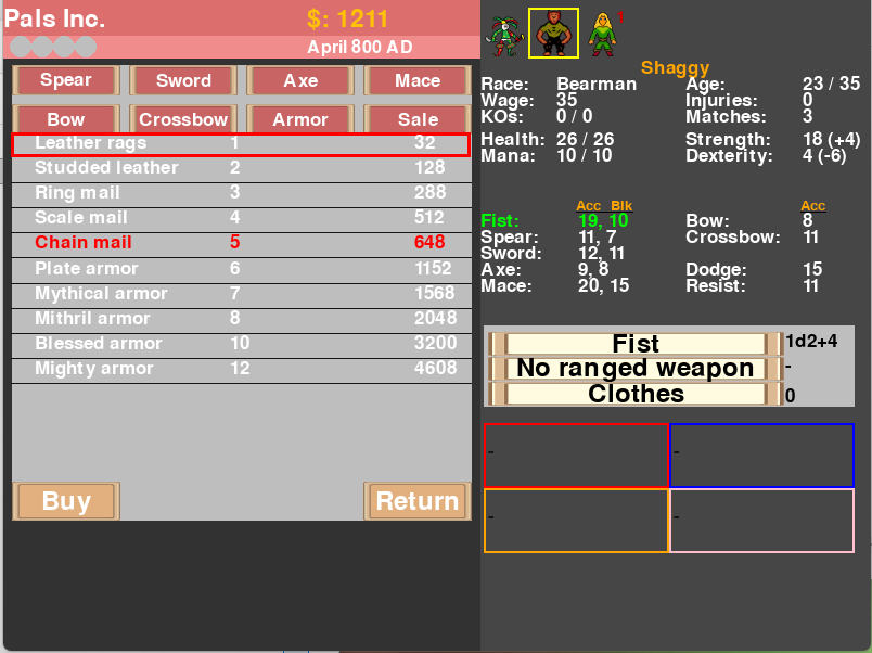 Decide how to spend your hard earned money on equipment, spells, GYM training, or on recruiting new pals for the cause. Tell your pals how to prioritize their skills and prepare them for the upcoming battles as you try to climb up towards the first division and become League Champions.